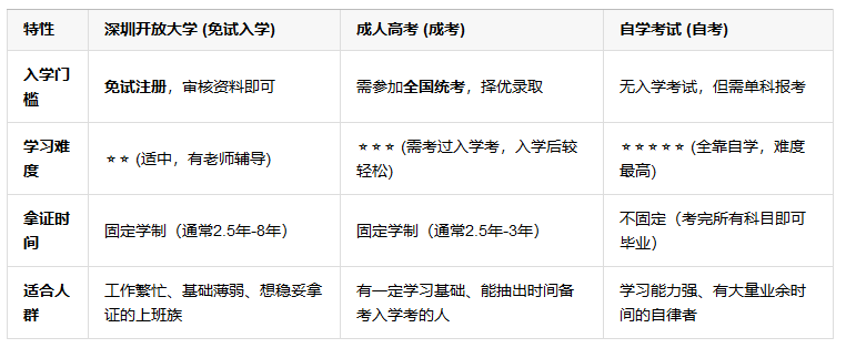 与其他成人学历形式对比