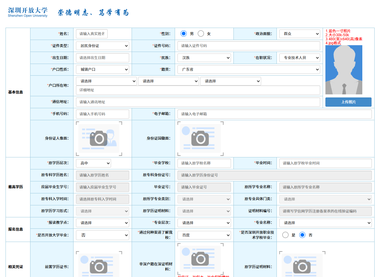 上传或准备相关材料(如身份证、毕业证、照片等)。