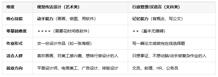 广开视觉传达设计 vs 纯文科专业(如行政管理)