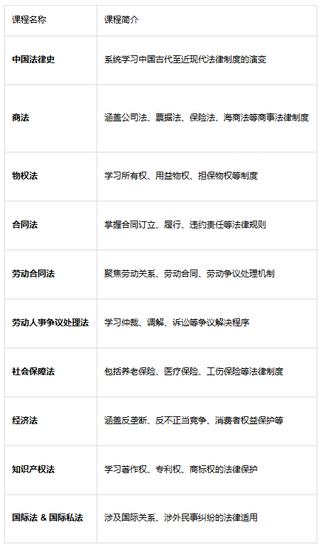 培养目标:培养具备系统法律知识、法律思维和实务能力的应用型法律人才,能在政府机关、企事业单位、法律服务机构从事法务、合规、行政、司法辅助等工作。