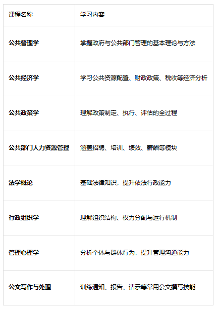培养目标:培养具备现代管理、组织协调、公文写作及办公实务能力的复合型管理人才,适合政府、企事业单位、社会组织等行政岗位。