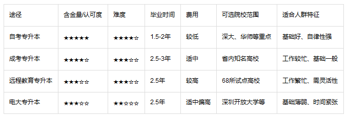 2. 工作较忙、希望稳妥毕业:推荐成考专升本,难度适中,社会认可度高。