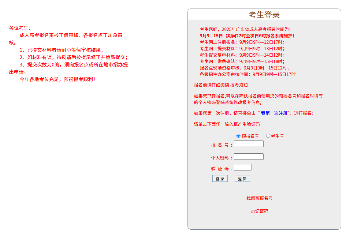 注册考籍:首次报考需登录广东省教育考试院自考管理系统(https://www.eeagd.cn/selfec)进行预报名,填写信息并上传证件照。