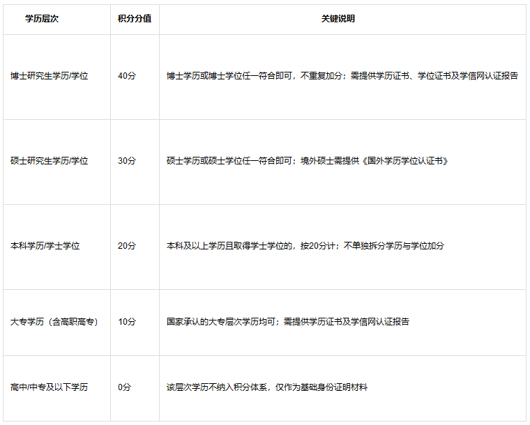 2. 学历用途:学历仅用于积分核算,需与申请人身份信息一致,不得使用虚假或无效学历申报,避免因材料问题导致申请失败。