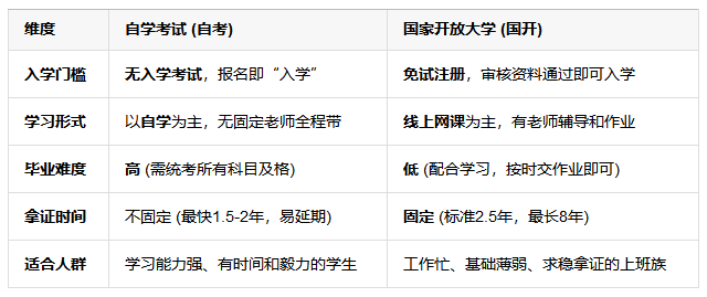 为了让大家更直观地了解,学历君为大家整理了一个核心对比表: