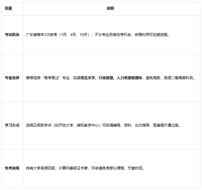 示例:选择自考“行政管理”或“汉语言文学”专业,合理搭配考试科目,2026年初报名,2027年底即可申请毕业。