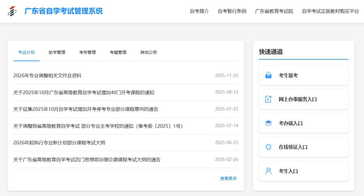 已办理过新生报名手续并取得准考证号的考生,可直接登录广东省自学考试管理系统,根据自身情况选择报考课程。