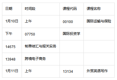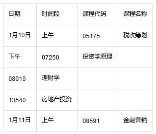 各专业考试课程时间表