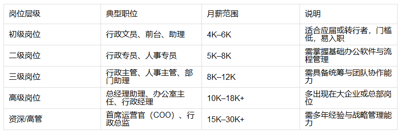 职业发展路径清晰:行政专员 → 主管 → 部门经理 → 总助/总监 → 高管(COO);