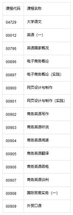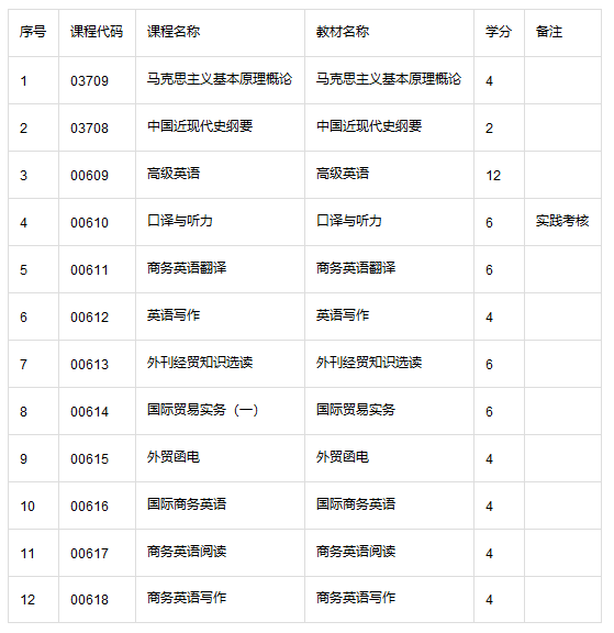 一、商务英语自考本科考试科目一览表
