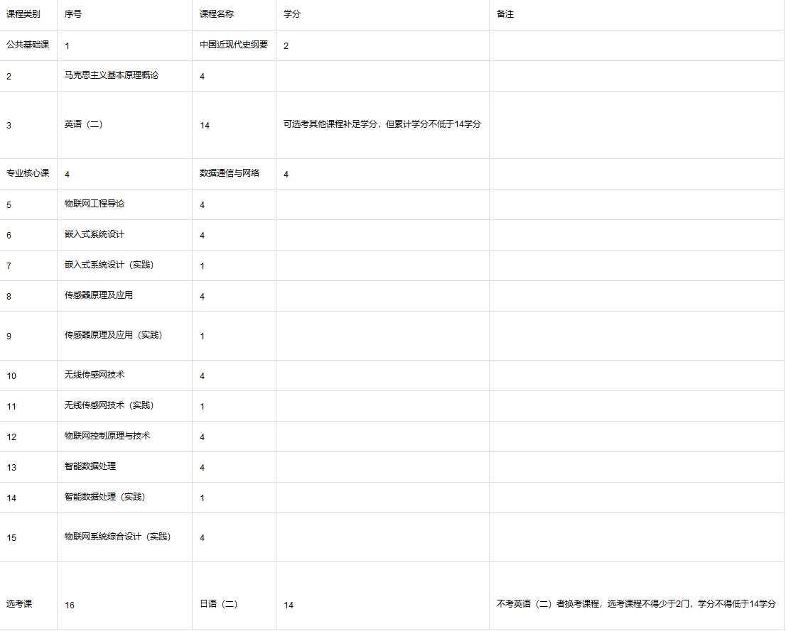 《英语(二)》:提升学生的外语能力,有助于学生阅读国外专业文献,了解国际前沿的物联网技术动态。若未通过该课程考试,可选择其他选考课程补足学分。